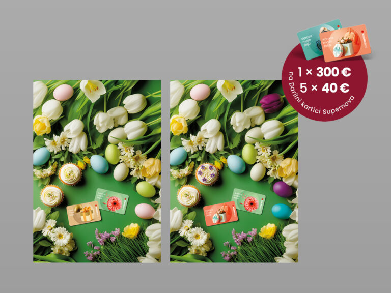 Pobrskaj po trendi motivih za vsako priložnost ali naroči unikatno darilno kartico z lastno fotografijo. Na Darilno kartico Supernova lahko naložiš poljubno vrednost od 10 € do 300 €, koristi pa se lahko postopoma, v različnih trgovinah in različnih nakupovalnih centrih.
